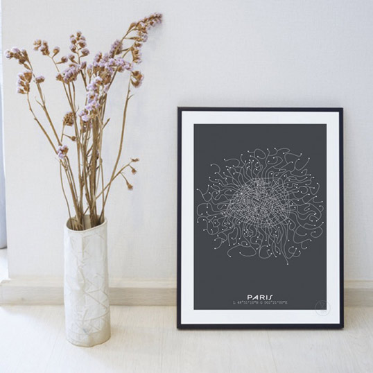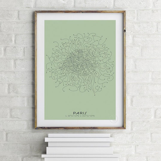 Une jolie représentation de Paris en toute poésie… La tête dans les étoiles, observez la Ville Lumière sans jamais atterrir 🙂 Dimension : 30 x 40 cm Différents coloris : Fond Noir, Rues Blanches // Fond Vert, Rues Noires Imprimée sur Papier Rives 170g Blanc Naturel à La Rochelle Vendu sans cadre. Tu veux un cadre ? Rendez-vous ici !