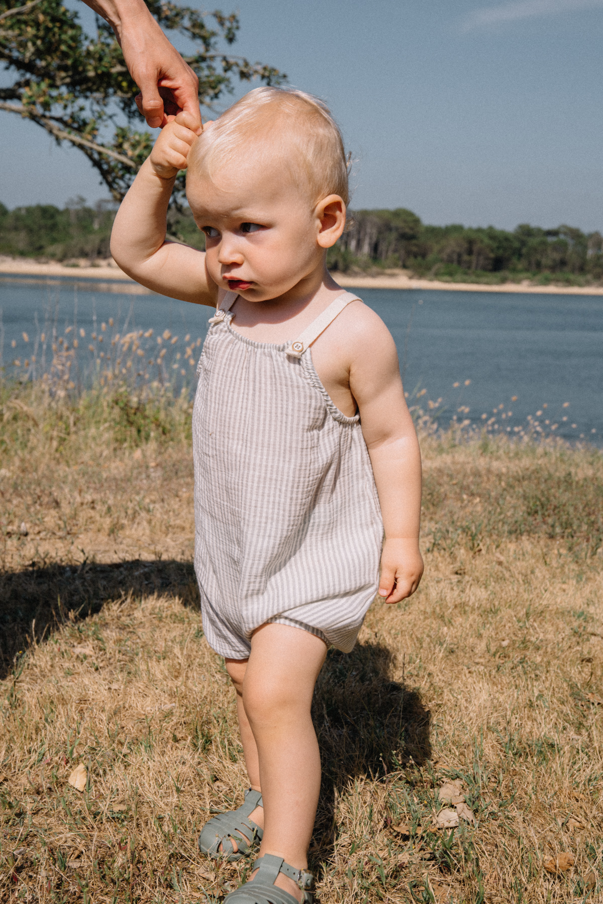 Barboteuse striped Buho light grey