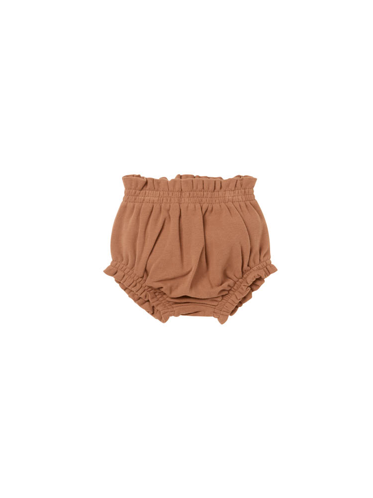 Culotte bouffante froncée dans notre jersey gratté bio doux et velouté. Taille et bas de jambe élastiqués.