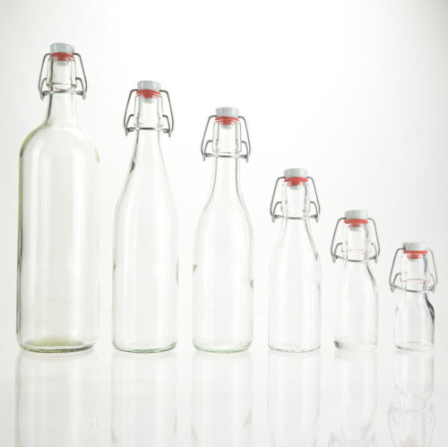 Bouteilles à limonade en verre blanc avec fermeture mécanique et tête en porcelaine