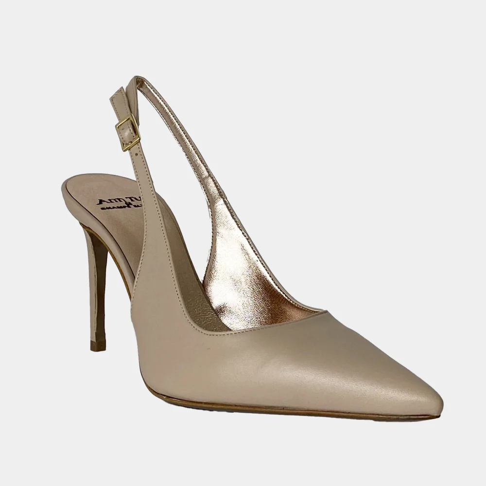 Succombez à l’élégance et au raffinement des escarpins modèle Afuria en cuir beige! Découvrez toute la collection de chaussures sur Ann Tuil. Escarpins slingback à talon Cuir beige Bout pointu Bride de réglage Ouverture au talon Talon fin de 9 cm Intérieur tout cuir Semelle extérieure en cuir Made in Italy