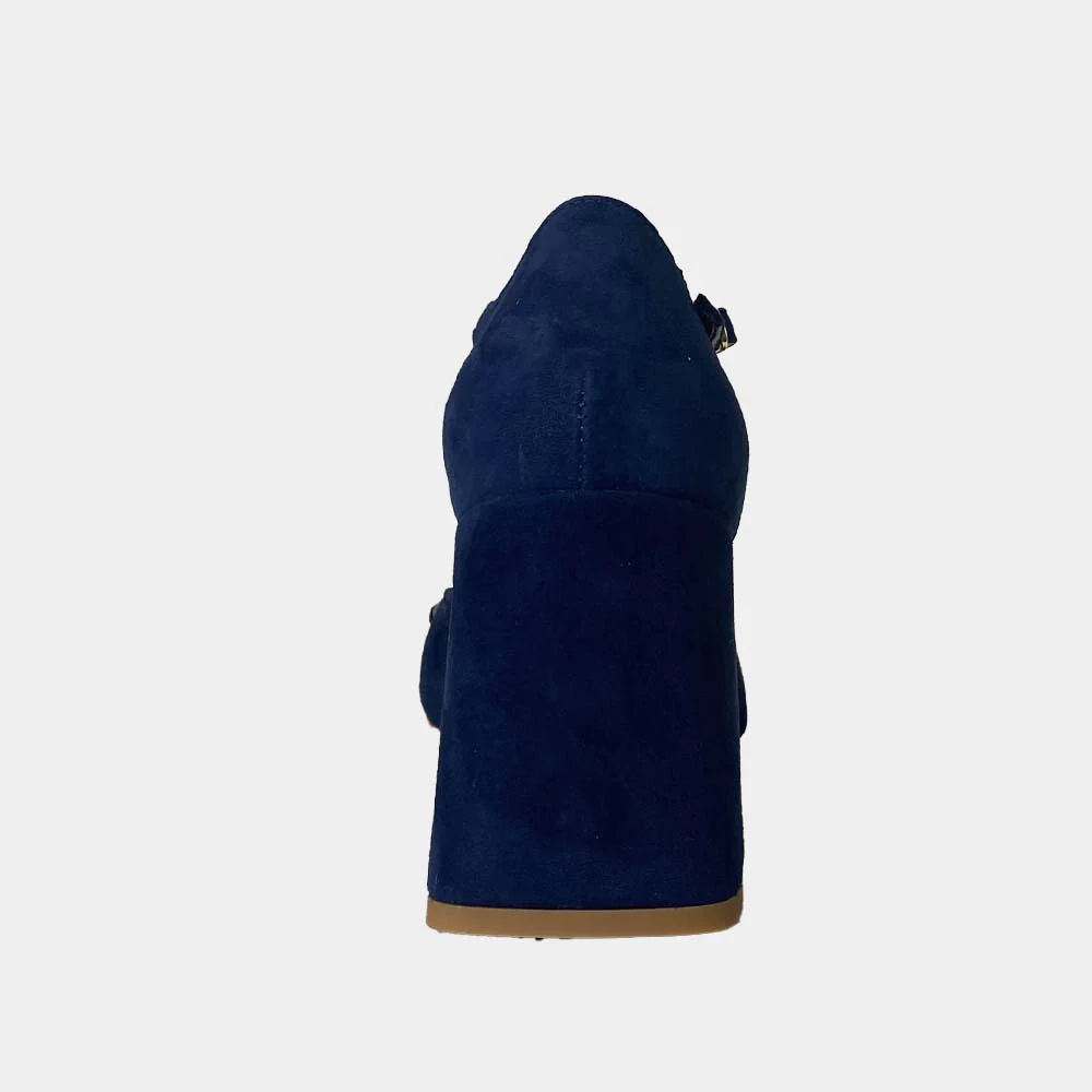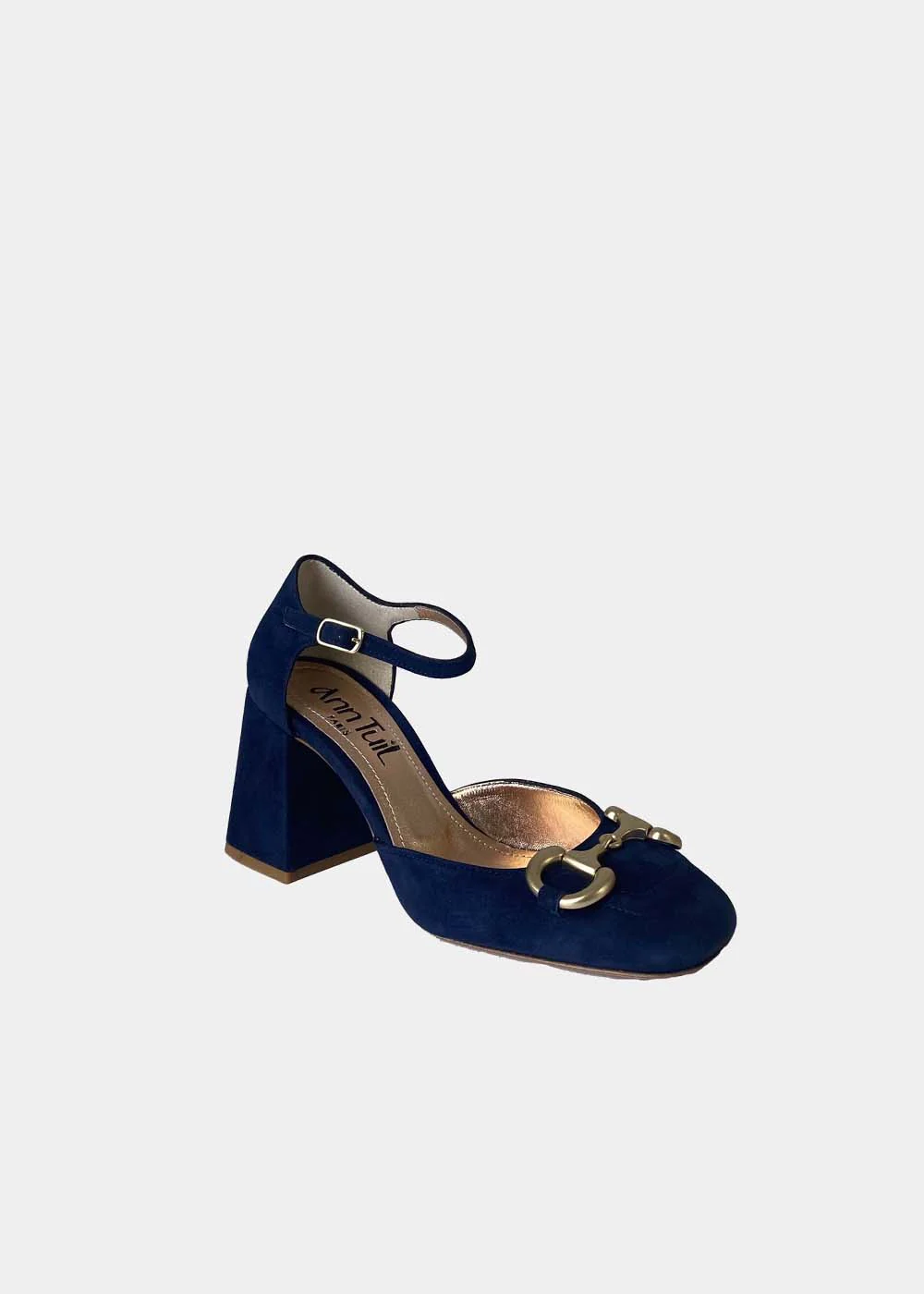 Succombez à l’élégance et au raffinement des escarpins modèle Mystère en velours marine! Découvrez toute la collection de chaussures sur Ann Tuil. Escarpins à talons Cuir velours marine Bout carré Mors doré à l’avant Bride collier Talon épais de 7.5 cm Intérieur tout cuir Semelle extérieure en cuir Made in Italy