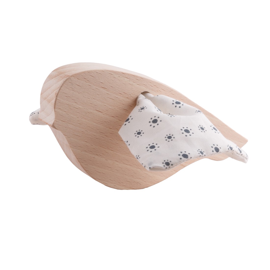 Figurine Mésange en bois composée d’un oiseau en bois et d’ailes en tissu Paulette et Sacha