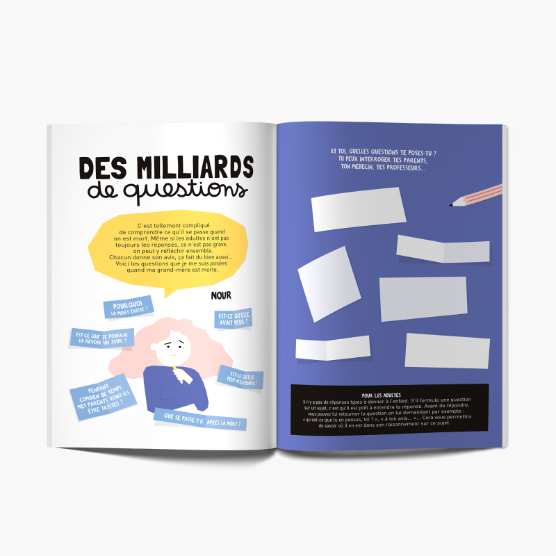 Quelqu’un dont tu es proche est mort. Ce livre a pour but d’accompagner à leur rythme un adulte et un enfant sur le chemin du deuil : revenir sur ce qui s’est passé ce jour-là, parler du défunt, se souvenir des bons moments et surtout pouvoir exprimer quand ça ne va pas ! A travers des activités et des questions, on apprivoise la douleur et le manque et on apprend à vivre sans cette personne, ! Ce parcours peut être long, chacun vit ce moment à sa façon et à son rythme, mais ce qui est sûre, c’est que le…